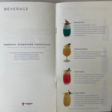 Then came the menu. I expected wine. Maybe a mimosa. I did not expect a Tanduay cocktail collection.